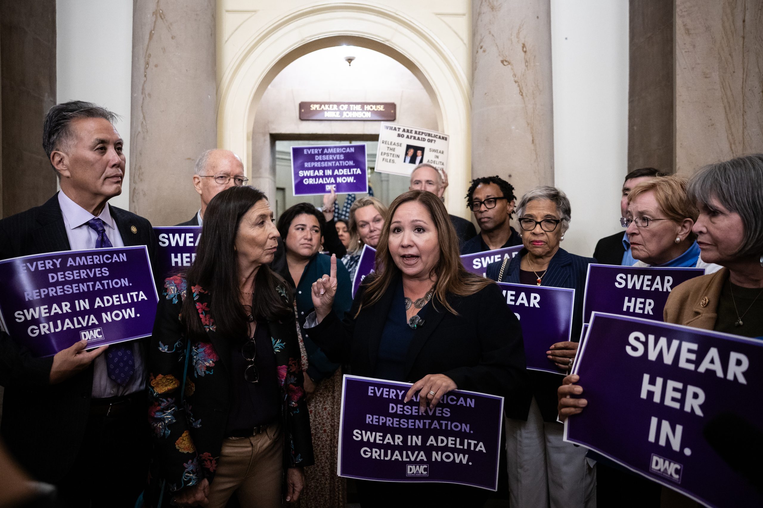 Adelita Grijalva, a Democrat, has accused Johnson of slow-walking her swearing-in ceremony because she has vowed to sign on to an effort to force a vote on legislation related to releasing files about the investigation into sex offender Jeffrey Epstein.