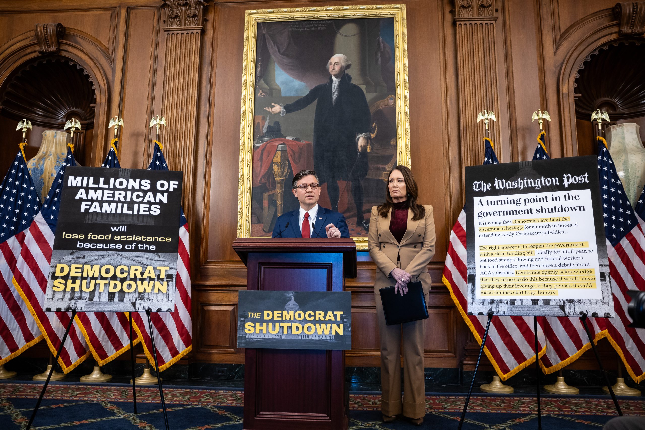 But there’s little chance members of Congress will be able to cobble together a deal to reopen the government before their partisan stalemate clears a new milestone. Even if an agreement quickly materializes in the Senate, lawmakers aren’t scheduled to return to the Capitol until Monday night, and Speaker Mike Johnson has told House members they will get 48 hours notice before they need to be back in Washington to vote on any bill.