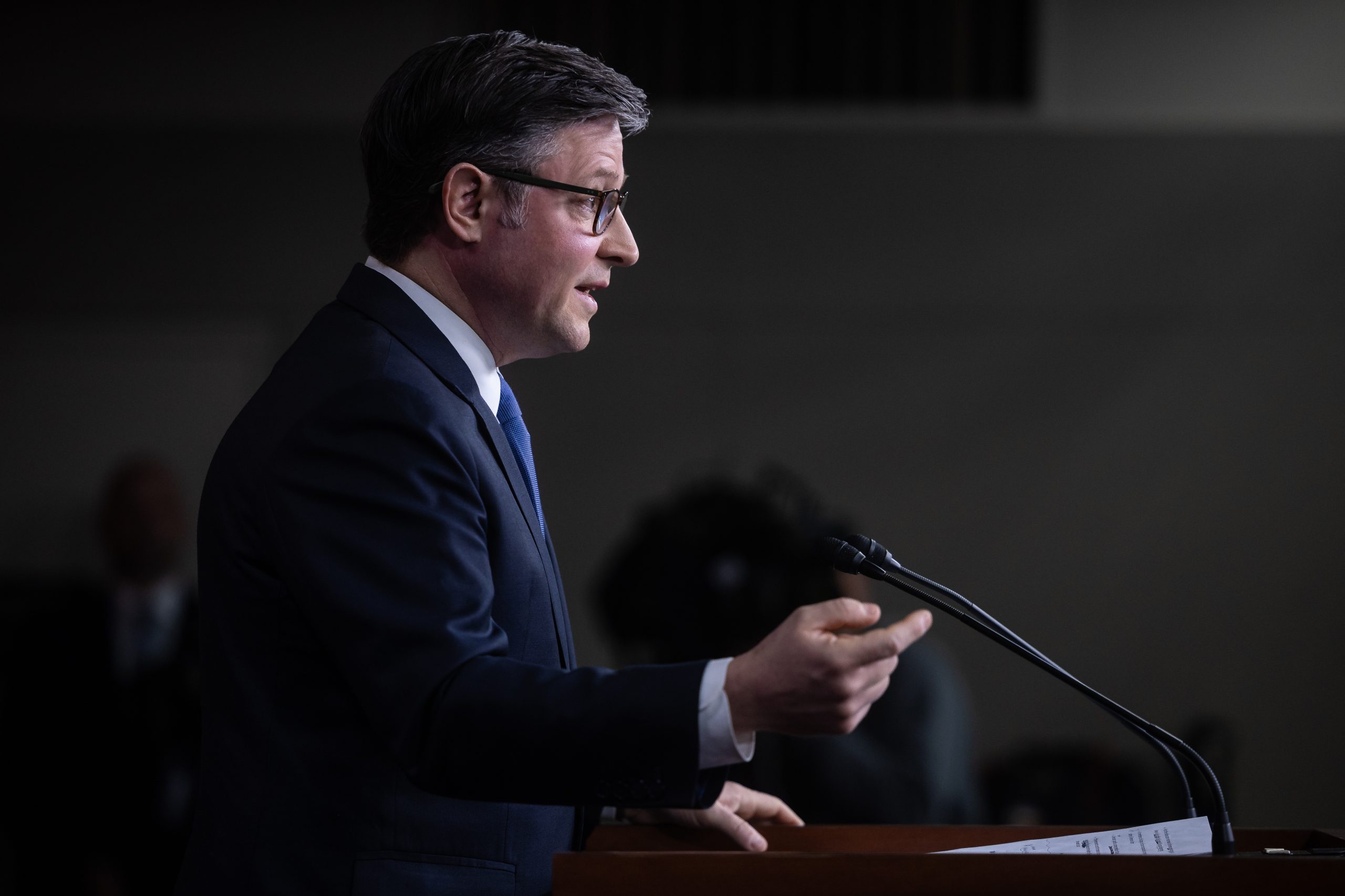 DORAL, Florida — Speaker Mike Johnson said Tuesday he has discussed “our tone and our message” with the two House Republicans who have made anti-Muslim remarks in recent days but defended the right of the lawmakers to oppose “the imposition of Sharia law.”
